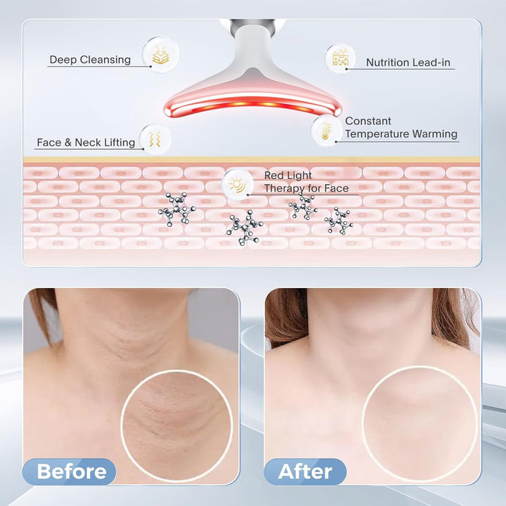This face neck massager has 7 different LED light modes that are not only suitable for massaging the face, neck but also can be used to massage the arms, shoulders and other body parts, tightening the sagging skin and relaxing the muscles.